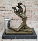 bronze Sculpture Signed Original Hot Cast Nude Girl By Statue Figurine Figure