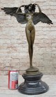 Huge Nude Male Angel Bronze Sculpture Signed Artwork Marble Statue Base Decor