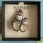 Napier Penguins Mom W Baby Brooch Pin Silver Tone Xmas New W Box Winter Holiday