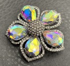Vintage Style Fashion Ab Crystal Rhinestone Flower Brooch Pin Silver Tone Read