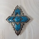 Sarah Coventry Turquoise Brooch Pin Silver Tone Geometric Large Signed Southwest