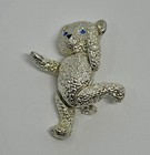 Silver Tone Articulated Teddy Bear Blue Eyes 1.5" Brooch Pin