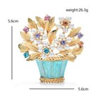 Large Vintage Crystal Rhinestone Flowers In A Green Vase Brooches Pins For Women