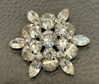 Vintage Brooch Rhinestone Crystal Done Layered Flower Pin Retro Costume Jewelry