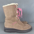 Ugg Heart Lacy Boots Womens Size 6 Brown Pink Leather Warm Winter Boots Casual