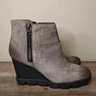 Sorel Joan Of Arctic Wedge Ii Boots Womens Size 9.5 Brown Leather Waterproof Zip