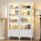 White Multi-use Metal & Glass Cabinet 71" Tall With Anti-tip Lockable 5 Shelves