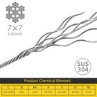 304 Stainless Steel Cable Wire Rope 1/16" 7x7 For Diy Decking Railing System