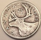 1943 🇨🇦 Canada Silver 25 Cents Coin - Combined Shipping - Lot C93b