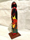 Vintage 17" Tall Hand Carved & Painted Alaskan Inuit Eskimo Wooden Totem Pole