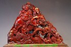 22''old Chinese Red Shoushan Stone Carved Arhat Rohan Elephant Auspicious Statue