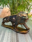 Vintage Carved Stone Panther Puma Cat Statue Figurine Mountain Lion Natural Art