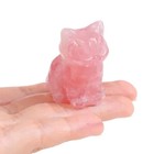 Natural Rose Quartz Crystal Carved Lucky Cat Stone Statue Healing Animal Decor