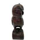 Vintage Hand Carved Dark Wooden Owl Statue Sculpture Figurine Free Standing 8"