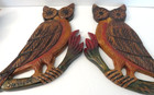 Rustic Primitive Folk Art Wooden Owl Pair Wall Hanging Brown Carved Owls
