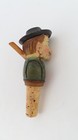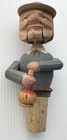 Italy Hand Carved Wood Cork Wine Bottle Stopper Man Drinks Vintage *animated*