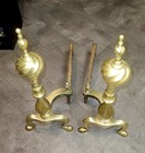 Pair Of Antique Federal Style Chippendale Andirons Brass & Cast Iron