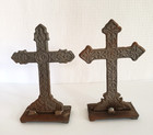Rustic Antique Cast Iron 7" Religious Cross Set Of 2 Free Standing Christian Art