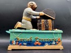 Vintage Cast Iron Mechanical Monkey Bank – Man & Monkey Coin Bank