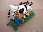 Vintage Mechanical Cast Iron Coin Bank Dairy Cow Kicks Farmer With Milk Bucket