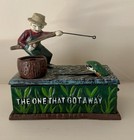 Cast Iron Mechanical Coin Bank "the One That Got Away"