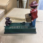 Vintage Cast Iron Monkey Bank Mechanical Coin Bank *works*