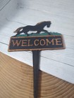 Vintage Cast Iron Hand Painted Welcome Sign Garden Stake W Horse