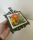 Vintage New In The Package Cast Iron & Tile Trivet Red Yellow Teapot Flowers