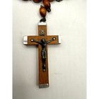 Catholic Prayer Rosary Olive Wood Beads Necklace Holy Soil Medal Cross Crucifix
