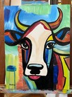 Original, Coa, Signed, "cow's" Mixed Media Painting On 9x12 Paper- Ooak Whimsy