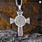 Irish Celtic Cross Necklace Norse Viking Knot Large Pendant Men Stainless Steel