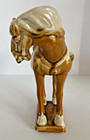 Vintage Tang Dynasty War Horse Figurine Glazed Ceramic China Statue