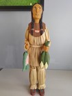 Vintage Wooden Indian Figures Thanksgiving Harvest Man And Woman Folk Art