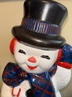 2 Sided Snowman Frosty Vintage Ceramic Mold Top Hat Scarf Hand Paint
