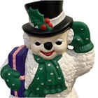 Vintage 80's Snowman Ceramic Mold – Hand Painted 18" Tall - Green Scarf - Rare
