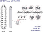 14" 16" 18" 20" 22" 24" Chainsaw Saw Chain Blade .325" .050" 3/8"lp .058" 0.43"