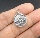 Handmade Sterling Silver Ocean Wave And Sun Small Round Charm Pendant Unique
