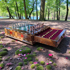 Handcrafted Ocean Blue Epoxy Resin & Pine Wood Chess Board Set W/ Pieces