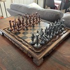 Large Chess Set Handmade – Inlaid Storage Board 15" - Metal Pieces, Xmas Gift🎄