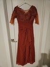 Lace Rust Mother Of The Bride Dress Long Ruffled Chiffon Formal Evening Gown Sz4