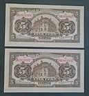 1914, China, Bank Of Communications 5 Yuan Banknote Shanghai Cu Sequential Pair