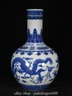 17.2" Qianlong Marked Chinese Blue White Porcelain Dragon Beast Bottle Vase