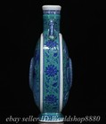 13.2" Qianlong Marked Chinese Blue White Porcelain Dragon Flat Vase Bottle