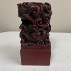 Vintage Chinese Carved Feng Shui Dragon Deep Red Resin Good Luck Statue