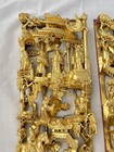 Antique Chinese Hand Carved Gilt Wooden Wall Art (2) Warriors, Horses, Arches