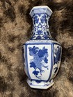 Large Antique Chinese Blue On White Hexagon Porcelain Vase