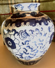 Antique Chinese Blue & White Porcelain Vase Chrysanthemum Scroll Design