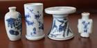 Old Antique Chinese Set Of 4 Blue & White Porcelain Vases