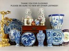 Large Antique Chinese Blue White Porcelain Vase Jar With Carved Stand & Cover