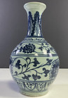 Chinese Blue White Porcelain Vase Baluster Form. Hand Painted Landscape Scene